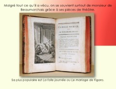 Malgré tout ce qu’il a vécu, on se souvient surtout de monsieur de Beaumarchais grâce à ses pièces de théâtre. Sa plus populaire est La folle journée ou Le mariage de Figaro.